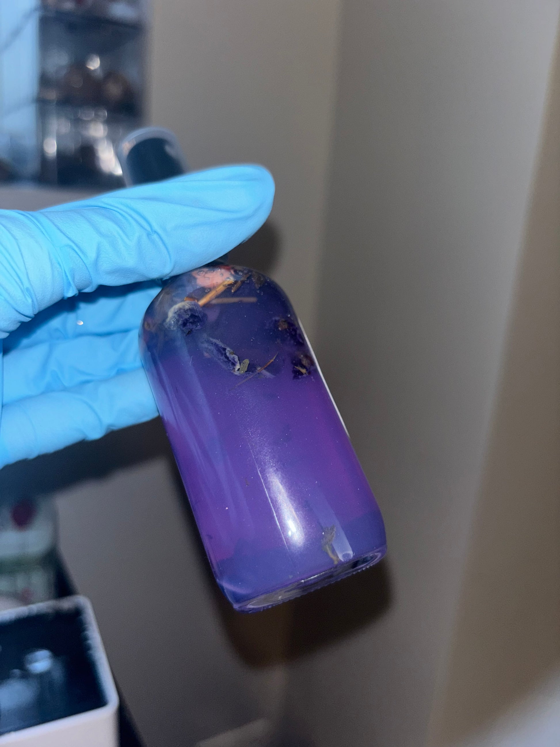 this oil was made with the intentions to protect you against evil eye glares, jinxes, hexes and curses. also enhance your clairvoyance while also protecting your third eye. Essential oils and herbs added for a more potent blend. Nazar Charm can be changed to a different color upon request. use this oil when you're about to step out into an outing with unknown or known energies, dab a few drops on your candles, jewelry, hair accessories or objects that you keep on you. anointing oil. cold as curio. 6-month life shelf. Enchanted/ Spell oil.